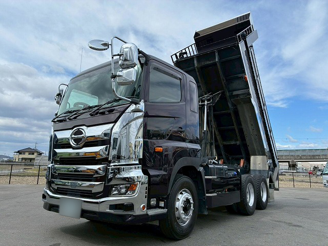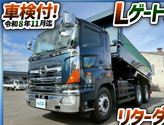 日野「プロフィア」のダンプは、馬力があり低振動で耐久性の高さも特徴です。荷台の形状は「強化・角底1方開」「強化・ロング角底1方開」の2タイプ、エンジンは3タイプから選べます。
